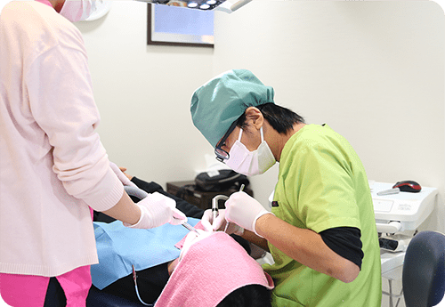 また、治療の際には、歯科医師、スタッフ一同、患者様に安心して治療を受けていただけるように、笑顔を忘れず、患者様に対して丁寧なコミュニケーションをすることを心がけております。患者様に十分に納得して治療を受けていただけるよう、お口の状況やそれに対する治療方法などを、丁寧にわかりやすく説明いたします。歯のことでお悩みの際には、どうぞお気軽にご相談ください。